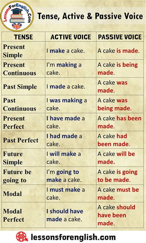 For example, if you are writing a report about an accident, passive voice could be used to describe the event, but active voice can be used to describe the actions of the people involved. Creating a structure of active and passive voice in all tenses pdf should include these examples to help students understand the context in which each voice is most effective.