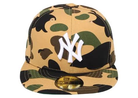 Now, let’s explore some of the key design elements that set this cap apart. First, the camouflage pattern is a hallmark of BAPE, often featured prominently on the cap’s crown or brim. This instantly gives the cap a streetwear edge, making it stand out from typical baseball caps. Second, the Ape Head logo , another signature of BAPE, might be subtly placed on the side or back of the cap, adding a touch of exclusivity. The iconic Yankees logo, whether in its traditional form or modified to fit the BAPE aesthetic, serves as the central focal point, celebrating the team’s rich history and legacy. Furthermore, the selection of materials is critical. The use of premium fabrics not only enhances the cap’s appearance but also ensures it feels great to wear. Lastly, the attention to detail in the embroidery and stitching is a testament to the high-quality craftsmanship, making each cap a collector’s item. So, whether you are a die-hard Yankees fan or a streetwear aficionado, the BAPE x MLB Yankees 59FIFTY cap is a must-have accessory that allows you to express your individual style while paying homage to two iconic brands.
