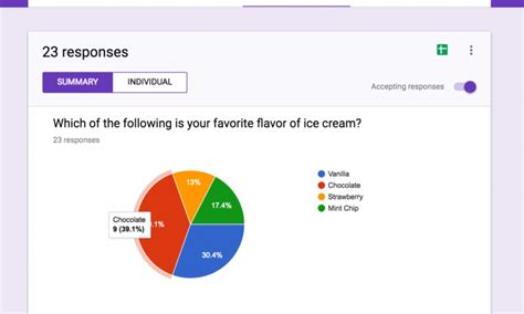 - Summary: Di bahagian ‘Summary’, Google Forms akan tunjukkan anda ringkasan semua respons yang anda terima. Data akan dipaparkan dalam bentuk carta dan graf yang mudah difahami. Kalau anda buat soalan pilihan berganda, anda akan nampak graf pai yang cantik. Kalau soalan jenis ‘short answer’ atau ‘paragraph’, anda akan nampak senarai jawapan yang diberikan.