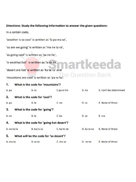 2. Identify the Pattern/Rule: Once you’ve analyzed, try to deduce the underlying logic. Is it a simple +N or -N shift? Is it a substitution cipher where each letter has a unique replacement? Is it based on the position of letters in the alphabet (A=1, B=2, etc.)? Could it be the reverse alphabet (A=Z, B=Y)? Or perhaps a combination? For mixed coding (letters, numbers, symbols), look for commonalities. If PORT is coded as 5312 and RATE is coded as 6732 , you can deduce that ‘R’ is likely ‘3’ and ’T’ is likely ‘2’ because they are common to both words and their codes. Keep a small scratchpad to jot down potential mappings as you discover them. Don’t assume the first pattern you find is correct; verify it against all given examples.