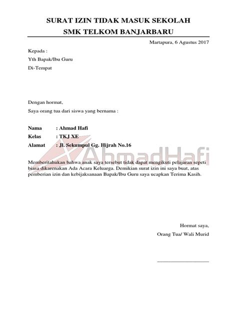 Catatan : Jangan lupa untuk menyesuaikan contoh-contoh di atas dengan situasi dan kondisi kamu ya, guys! Yang penting, tetap gunakan bahasa yang sopan dan formal, serta jelaskan alasan ketidakhadiranmu dengan jelas dan jujur.