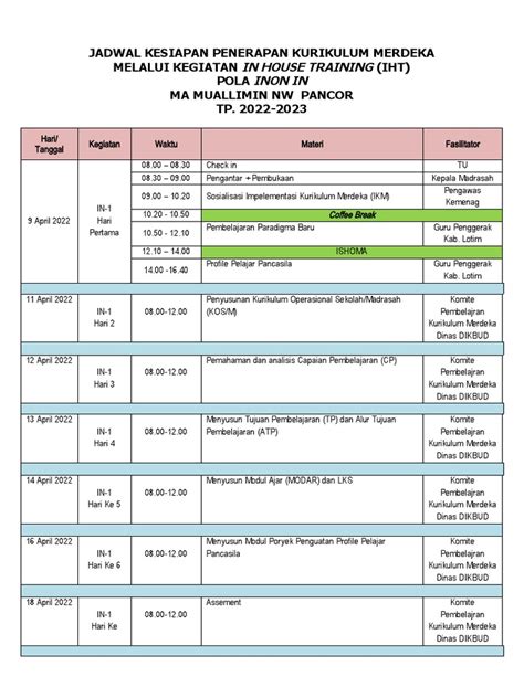 3. Menyamakan Visi dan Persepsi : Bayangin kalau tiap guru punya pemahaman yang beda soal Kurikulum Merdeka. Wah, bisa kacau balau nantinya. IHT ini fungsinya buat menyatukan langkah, menyamakan frekuensi, biar semua guru punya mindset yang sama dan tujuan yang searah. Ini penting banget buat membangun budaya sekolah yang positif dan kolaboratif.