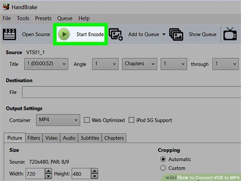 Start the Conversion: Once you’re happy with all your settings, click the green ‘Start Encode’ button at the top of the HandBrake window. HandBrake will now process your VOB file and convert it into an MP4. The time it takes will depend on the length and quality of the VOB file, your computer’s processing power, and the settings you chose.