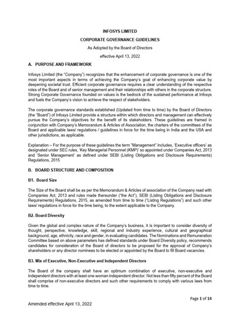 Alright, let’s get into the specifics of the 2022 corporate governance guidelines. These guidelines are designed to help companies improve their governance practices and stay up-to-date with the latest standards. They cover a wide range of topics, including board composition, risk management, and stakeholder engagement. One of the key areas of focus is board independence . The guidelines emphasize the importance of having a board that is independent from management, so it can provide objective oversight and challenge management’s decisions when necessary. This helps to prevent conflicts of interest and ensures that the board is acting in the best interests of the shareholders.