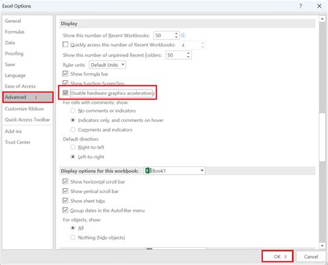 5. Check “Disable hardware graphics acceleration”: In the “Display” section, look for the checkbox labeled “Disable hardware graphics acceleration.” It’s often right there, plain as day. Check this box to disable the feature. This tells Excel to use the CPU instead of the GPU for some of its visual processing.