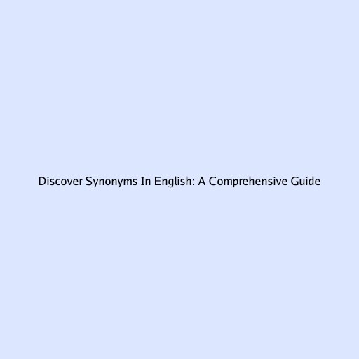Discover Synonyms in English: A Comprehensive Guide