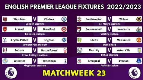 What’s up, football fanatics! Get ready to dive back into the thrilling world of the English Premier League. The 2022-23 season was an absolute rollercoaster, packed with drama, stunning goals, and upsets that had us all on the edge of our seats. Whether you’re a die-hard supporter of a top club or just love the beautiful game, understanding the EPL 2022-23 results is key to appreciating the entire narrative of that unforgettable season. We’re talking about the wins, the losses, the draws, and all the stats that made this season one for the history books. So, grab your favorite beverage, settle in, and let’s take a trip down memory lane to revisit every single result from this epic Premier League campaign. We’ll break down who came out on top, who battled bravely, and all the pivotal moments that shaped the final standings. It was a season where legends were made and new heroes emerged, and the EPL 2022-23 results tell the full story of that incredible journey. Get ready for a deep dive into the Premier League’s most recent past!