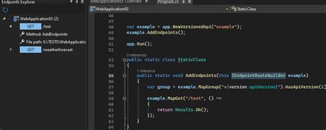 • Use Consistent Naming Conventions: Use consistent naming conventions for your endpoints and routes to make it easier for the Endpoints Explorer to discover and display them correctly.
