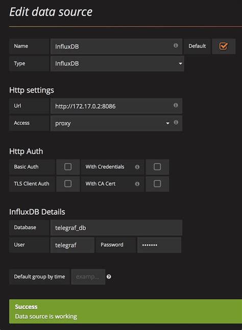 telegraf. - User and Password : Leave these blank for now if you haven’t set up authentication in InfluxDB. If you have, enter them here.