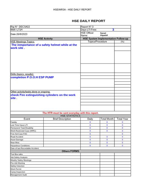 Hey guys! Let’s dive into the super important world of HSE (Health, Safety, and Environment) daily reports and how using an Excel spreadsheet can seriously level up your game. Whether you’re managing a construction site, a factory floor, or any workplace where safety is paramount, keeping a close eye on daily happenings is crucial. And honestly, the traditional pen-and-paper method? It’s a bit old school and can lead to messy data and missed opportunities for improvement. That’s where our good ol’ friend, Excel, comes in! It’s a versatile tool that can transform your reporting from a chore into a strategic advantage. We’re talking about making your daily HSE reporting efficient, organized, and insightful . So, buckle up, because we’re about to break down why an HSE daily report Excel template is your new best friend, how to set one up, and what killer features you should be looking for.