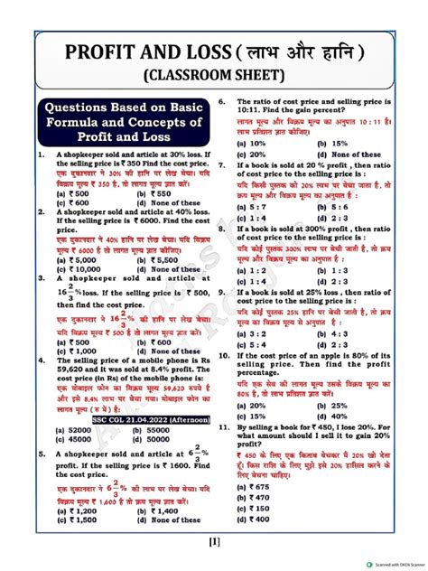 Okay, so we’ve covered the basics of profit and loss. But what happens when businesses don’t just sell things at a fixed price? That’s where discounts and the Marked Price (MP) come into play, and IndiaBIX loves to throw these into the mix! The Marked Price , often called the list price or tag price, is the price printed on the item or advertised. It’s usually higher than the Cost Price, acting as a buffer. The Discount is the reduction offered on the Marked Price to attract customers or clear inventory. It’s usually given as a percentage of the MP. So, the formula here is: Discount Amount = Marked Price (MP) - Selling Price (SP) . And the Discount Percentage is: (Discount Amount / MP) * 100 . It’s crucial to remember that discounts are calculated on the Marked Price , not the Cost Price. This is a common pitfall, so pay attention! IndiaBIX often presents scenarios where you need to calculate the profit or loss after a discount has been applied. Let’s say an item has a CP of ₹800. The shopkeeper marks it up by 25% to ₹1000 (MP). Then, they offer a 10% discount on the MP. The discount amount is 10% of ₹1000, which is ₹100. So, the Selling Price becomes ₹1000 - ₹100 = ₹900. Now, to find the profit, we compare the SP (₹900) with the CP (₹800). The profit is ₹100. The profit percentage is (100 / 800) * 100 = 12.5%. See how the discount affects the final profit? It’s all about navigating these steps correctly. Sometimes, you might be given the profit and discount percentage and asked to find the ratio of CP to MP. These problems require you to work backward using the formulas. For instance, if SP = MP * (100 - Discount %) / 100 and also SP = CP * (100 + Profit %) / 100, you can equate these to find the relationship between MP and CP. Understanding how discounts interact with profit and loss is essential for solving many real-world business problems and acing those exam questions, guys!