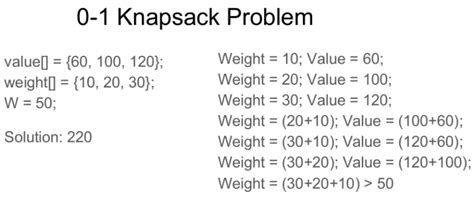System.out.println(knapsack(capacity, weights, values, n)); // Output: 220