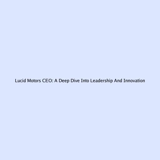 Lucid Motors CEO: A Deep Dive Into Leadership And Innovation