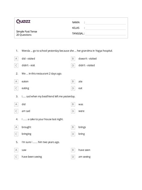 Now, let’s talk specifics about how you can use Quizizz to really nail the simple present and past tenses. When you jump onto Quizizz, you’ll find a ton of different activities. You might encounter multiple-choice questions where you have to select the correct verb form, like “Yesterday, I _ to the park.” Your options could be ‘go’, ‘goes’, ‘went’, or ‘gone’. Obviously, the correct answer here is ‘went’. Or, you might see fill-in-the-blank questions that require you to type the correct verb. For instance, “She _ her homework every evening.” Here, you’d need to type ‘does’ or ‘completes’. Another common type is sentence identification, where you’re shown a sentence and asked whether it uses the simple present or simple past tense. This helps you distinguish between the two and understand their usage in context. Some quizzes might focus specifically on irregular verbs, presenting you with a regular form and asking for its past tense counterpart, or vice versa. This is where your memorization skills really come into play! You’ll also find questions that test your understanding of common errors, like confusing the past tense with the past participle, or incorrectly forming negative sentences in the past. The beauty of Quizizz is its adaptability. You can search for quizzes using keywords like “simple present vs simple past,” “past tense irregular verbs,” or “present tense habits.” This allows you to tailor your practice to your specific needs. If you’re struggling with irregular verbs, just search for quizzes that focus on that. If you need to differentiate between habitual actions (present) and completed events (past), find quizzes that highlight that contrast. The immediate feedback mechanism on Quizizz is your best friend. After each question, you’ll know if you got it right or wrong. If you get it wrong, don’t sweat it! Most Quizizz games allow you to review the correct answers and explanations, helping you understand your error. This is crucial for solidifying your learning. Think of each quiz as a mini-lesson. You’re not just answering questions; you’re actively learning and reinforcing grammar rules through interactive challenges. It’s a dynamic way to practice that keeps your brain engaged and makes the learning process much more effective and enjoyable than traditional methods. So, dive in, explore the quizzes, and get ready to see your tense mastery soar!