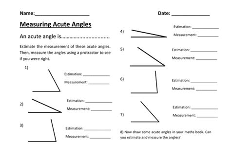3. Drawing and Measuring: Draw a line on a piece of paper. Then, use your ruler to draw another line that forms an acute angle with the first line. Measure the angle you’ve created. Repeat this several times, drawing different angles each time. This will help you develop your skills in both drawing and measuring angles.