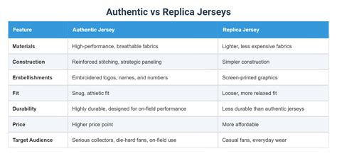 So, guys, let’s boil it down. When you’re comparing an original (authentic) NFL jersey versus a replica NFL jersey , there are a few key differences that really stand out. First up, materials and construction . Authentic jerseys use premium, high-performance fabrics and feature tackle twill for sewn-on numbers and names, giving them a substantial, professional feel. Replicas, on the other hand, typically use standard polyester and have screen-printed or heat-transferred graphics, which are still good quality but lack that raised, textured effect. Next, durability . Because of the superior materials and construction, authentic jerseys are built to last significantly longer and withstand more wear and tear. Replicas are durable for everyday use but may not hold up as well over many years of heavy use compared to their authentic counterparts. Then there’s the price . This is probably the most noticeable difference, with authentic jerseys costing much more than replicas due to the quality and official licensing. Replicas offer a much more budget-friendly way to get the team look. Finally, authenticity and details . Authentic jerseys come with official NFL tags, holograms, and often have finer details in the stitching and logos that closely match what players wear. Replicas aim for the visual likeness but might not have all the official markings or the same level of intricate detail. Basically, if you want the absolute best quality, something akin to what players wear, and are willing to invest, go authentic. If you want a great-looking jersey that shows your team pride for everyday wear and at a fraction of the cost, a replica is the way to go. Both have their place in a fan’s wardrobe, serving different needs and budgets while achieving the same goal: showing your love for the game and your team!