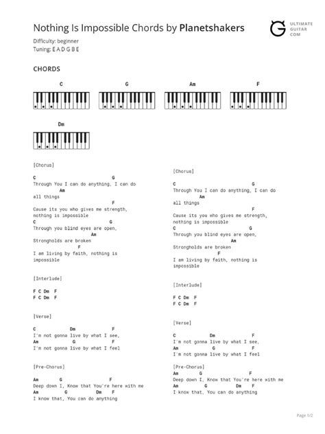 Let’s dive into learning the chords for the powerful worship song, “Nothing Is Impossible,” in the key of G. This guide will provide you with a comprehensive understanding of the chord progressions, voicings, and some helpful tips to play it smoothly. Whether you’re a beginner or an experienced musician, this breakdown will help you master this song and lead others in worship.