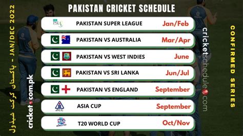 Hey cricket fanatics! Are you guys ready for an action-packed year of cricket? Pakistan’s cricket schedule for 2023 is jam-packed with exciting matches and tournaments, promising a thrilling experience for fans worldwide. From Test matches to One Day Internationals (ODIs) and Twenty20 (T20) clashes, the Pakistan cricket team is set to showcase their talent on the global stage. This comprehensive guide will provide you with all the essential information, including match dates, venues, and opponents, ensuring you don’t miss a single moment of the cricketing action. So, grab your snacks, get comfortable, and let’s dive into the exciting world of Pakistan cricket in 2023! Pakistan cricket schedule 2023 will be one of the best years to watch with a lot of matches available and tournaments. Get ready for an amazing year of cricket, including the Asia Cup, World Cup, and a bunch of other exciting series. The schedule includes everything you need to know, from the start dates to the venues. It’s time to mark your calendars and get ready to support the men in green! The Pakistan cricket team has a busy schedule ahead, with matches planned across different formats, including Tests, ODIs, and T20s. We’ll be covering all the major tournaments and series. So, if you’re a die-hard fan or just starting to get into cricket, this guide is for you. Stay tuned as we break down the schedule, match by match, giving you all the details you need to stay updated. We’ll also provide insights into the teams Pakistan will be facing and where you can watch the matches. Cricket in Pakistan is more than just a sport; it’s a passion that unites the nation. With a mix of experienced players and emerging talent, the team is always ready to bring their A-game. In 2023, the Pakistan cricket team will face several top international teams, providing fans with plenty of exciting matches. From home series to away tours, there will be no shortage of thrilling encounters. The team is aiming to make a significant impact in all major tournaments. The anticipation is building, and the fans are excited to see their favorite players in action. Make sure you don’t miss out on any of the thrilling moments. The Pakistan cricket schedule 2023 promises to be a year filled with unforgettable cricketing moments, exciting matches, and the thrill of watching the men in green compete at the highest level. From the intensity of Test matches to the adrenaline rush of T20s, there’s something for every cricket fan to look forward to. Keep an eye on this space for the latest updates, match timings, and broadcast details. Let’s gear up for an amazing year of cricket!