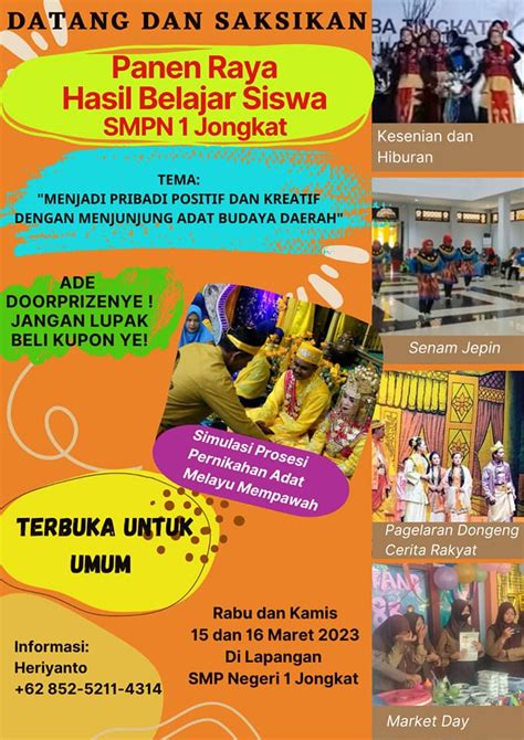 Does SMPN 1 Jongkat offer any sports teams? Are there opportunities for students to participate in athletics and develop teamwork skills? The school may have teams for sports like soccer, basketball, volleyball, or track and field. Participating in sports is a great way for students to stay active, build friendships, and learn valuable life lessons like discipline and perseverance. What about clubs and organizations? Does the school have any clubs that cater to various interests? This could include academic clubs, like a science club or a debate club, or hobby-based clubs, like a photography club or a drama club. These activities give students a chance to explore their passions, develop new skills, and socialize with like-minded peers. These extracurriculars are designed to promote social interaction and teamwork. These groups can take part in competitions, events, and community service projects. SMPN 1 Jongkat aims to provide a diverse range of activities that cater to the diverse interests of its students. This contributes to a vibrant and engaging school environment.