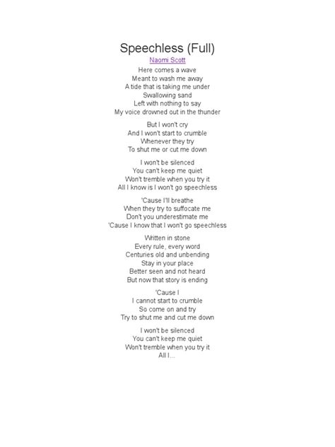 When you strip it all back, the core message of the Speechless lyrics is about the sheer, unadulterated power of a voice that has been reclaimed. Think about it, guys. There’s a unique strength that comes from overcoming silence. It’s not just about being able to speak; it’s about speaking after you’ve been through something that made you feel like you couldn’t. The Speechless lyrics brilliantly illustrate this journey. They acknowledge the pain, the frustration, and the isolation that comes with feeling silenced. But then, they pivot. They show the moment of defiance, the spark of courage that ignites the desire to be heard. This reclaimed voice isn’t just louder; it’s often more meaningful, more authentic, and more powerful because it carries the weight of the experience that preceded it. The song is a testament to the idea that our struggles don’t have to define us; they can refine us. They can equip us with the depth and resilience needed to make our voices truly impactful. The Speechless lyrics are a powerful reminder that silence doesn’t mean defeat. It can be a period of introspection, of gathering strength, and of preparing for a comeback. When the voice finally emerges, it’s not just a whisper; it’s a declaration. It’s a statement of survival, of resilience, and of self-worth. This is the ultimate power that the song celebrates. It’s the power of owning your narrative, of asserting your presence, and of contributing your unique perspective to the world. The Speechless lyrics inspire us to find that inner strength, to push past our fears, and to let our voices be heard. They remind us that every individual voice has value and that reclaiming your voice is an act of profound empowerment. It’s about recognizing your own worth, understanding that your story matters, and having the courage to share it. This act of reclaiming a voice can be transformative, not just for the individual, but for those around them, creating ripples of inspiration and change. The power of a voice reclaimed, as beautifully depicted in “Speechless,” is a potent reminder of our own potential to overcome, to express, and to make a significant impact on the world.