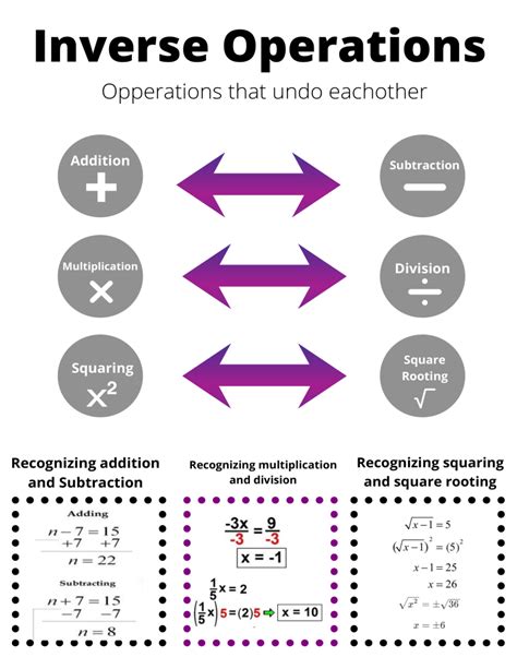 Understanding inverse operations isn’t just a mathematical curiosity ; it’s a fundamental concept that helps us solve equations and understand relationships between different operations. Think of it like this: if you put on your shoes, the inverse operation is taking them off. You can’t go backward without knowing how to undo what you’ve done! In mathematics, inverse operations allow us to isolate variables and solve for unknowns. Consider the equation x² = 25. To find the value of x, we need to undo the squaring operation. We do this by taking the square root of both sides: √(x²) = √25, which simplifies to x = 5. Without understanding that the square root is the inverse of squaring, we wouldn’t be able to solve this equation so easily. Inverse operations are also crucial in more complex mathematical fields like calculus and differential equations. They allow us to manipulate equations and functions to find solutions and analyze their properties. For instance, integration and differentiation are inverse operations in calculus, and understanding their relationship is essential for solving problems related to areas, volumes, and rates of change. Furthermore, inverse operations have practical applications in various real-world scenarios. In computer programming, they are used in cryptography to encrypt and decrypt data. In engineering, they are used in control systems to regulate and stabilize systems. In finance, they are used in investment analysis to calculate returns and risks. By mastering the concept of inverse operations, you gain a powerful tool that can be applied to solve a wide range of problems across different disciplines. So, whether you are a student, a professional, or simply someone who enjoys learning, understanding inverse operations is an invaluable skill that will enhance your problem-solving abilities and broaden your understanding of the world around you. Always remember that every operation has an inverse, and knowing how to use it can make your life a whole lot easier.