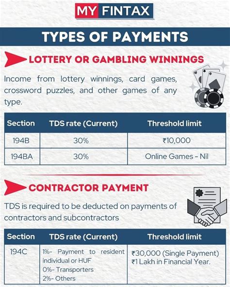 When it comes to rent payments , TDS is applicable if the rent exceeds a specified limit per annum. The TDS rate for rent payments varies depending on the amount and the recipient. For professional fees , such as payments to doctors, lawyers, and consultants, TDS is deducted at a specified rate, typically around 10%. This rate applies if the payment exceeds a certain threshold. Commission payments are also subject to TDS, with the rate varying based on the type of commission and the recipient’s status. For payments to contractors , TDS is deducted at rates that depend on the contract value and the contractor’s status. These rates can range from 1% to 2% for individuals and HUFs and 2% to 4% for other entities. Payments for transfer of immovable property are also subject to TDS if the transaction value exceeds a certain limit. The TDS rate is usually 1% of the transaction value. It’s important to note that these TDS rates are subject to change, and it’s essential to stay updated with the latest regulations. You can find the most current TDS rates on the official website of the Income Tax Department. Additionally, the TDS rates may vary depending on whether the recipient is a resident or a non-resident. Non-residents are subject to different TDS rates and rules. To ensure accurate TDS deduction, always verify the applicable TDS rate for each type of payment and comply with the relevant regulations. If you’re unsure about the correct TDS rate, it’s best to consult a tax professional or refer to the official government guidelines. By staying informed and following the rules, you can avoid penalties and ensure smooth tax compliance.