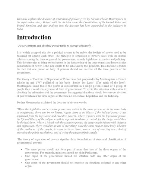 The concept of separating governmental powers isn’t exactly new, guys. Its roots go way back! Ancient Greek philosophers like Aristotle discussed the importance of different governmental functions. However, the idea really started to take shape during the Enlightenment. Thinkers like John Locke were hugely influential. Locke, in his Two Treatises of Government , argued for a separation of powers, distinguishing between legislative, executive, and federative (foreign affairs) powers. He believed that concentrating power in one place was dangerous and that a government’s legitimacy came from protecting the rights of its citizens. But the guy who really solidified the concept as we know it today is Baron de Montesquieu , an 18th-century French philosopher. In his masterpiece, The Spirit of the Laws , Montesquieu meticulously analyzed different forms of government and concluded that liberty could only be secured by separating the powers of government. He identified the legislative, executive, and judicial powers and argued that for liberty to exist, these three powers must be vested in different organs. He was particularly impressed by the English system of government (though his understanding might have been somewhat idealized). Montesquieu’s ideas had a profound impact on the framers of the United States Constitution. They were deeply concerned about replicating the tyranny they had experienced under British rule. So, they consciously incorporated Montesquieu’s principles into the design of the American government, creating distinct legislative (Congress), executive (President), and judicial (Supreme Court) branches. It’s fascinating how these philosophical ideas translate directly into the structure of modern nations. Over time, the strict separation envisioned by Montesquieu has evolved. In many systems, especially parliamentary ones, there’s more overlap between the legislative and executive branches (e.g., the executive is drawn from the legislature). However, the core principle of preventing concentrated power and ensuring distinct functions remains a guiding light. The evolution shows that while the form might adapt, the function of preventing unchecked power is adaptable and enduring. Understanding this historical journey helps us appreciate why this doctrine is so deeply ingrained in many democratic systems today. It’s a testament to centuries of thought about how to create a just and stable society.