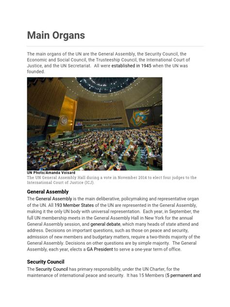 The UN governance framework is built upon several key pillars, each playing a vital role in its overall structure and function. At its heart, we find the General Assembly , often referred to as the world’s parliament. This is where all 193 Member States come together, with each nation having an equal vote. It’s a place for discussion, debate, and making recommendations on a vast array of international issues, from disarmament to development. While its resolutions aren’t legally binding in the same way as Security Council decisions, they carry significant moral and political weight, reflecting the collective will of the international community. Think of it as a global town hall where every voice gets to be heard. Then, we have the Security Council , arguably the most powerful body within the UN. Its primary responsibility is maintaining international peace and security. It has the authority to make decisions that Member States are obligated to implement, including imposing sanctions or authorizing the use of force. This council is composed of 15 members, with five permanent members – China, France, Russia, the United Kingdom, and the United States – holding veto power. This veto power, while intended to prevent hasty or ill-considered actions, is also a point of contention and can sometimes lead to deadlock. Moving on, the Economic and Social Council (ECOSOC) acts as the central platform for UN system-wide coordination and management of economic, social, and environmental issues. It oversees the work of numerous specialized agencies, funds, and programs, and plays a crucial role in promoting sustainable development. The International Court of Justice (ICJ) , based in The Hague, is the principal judicial organ of the UN. It settles legal disputes between states and gives advisory opinions on legal questions referred to it by authorized UN organs and specialized agencies. Finally, the Secretariat , headed by the Secretary-General, is the administrative arm of the UN. It carries out the day-to-day work of the organization, supports other UN bodies, and implements programs and policies. This intricate structure, with its interconnected bodies, forms the backbone of the UN governance framework , enabling the organization to tackle global challenges across diverse domains.