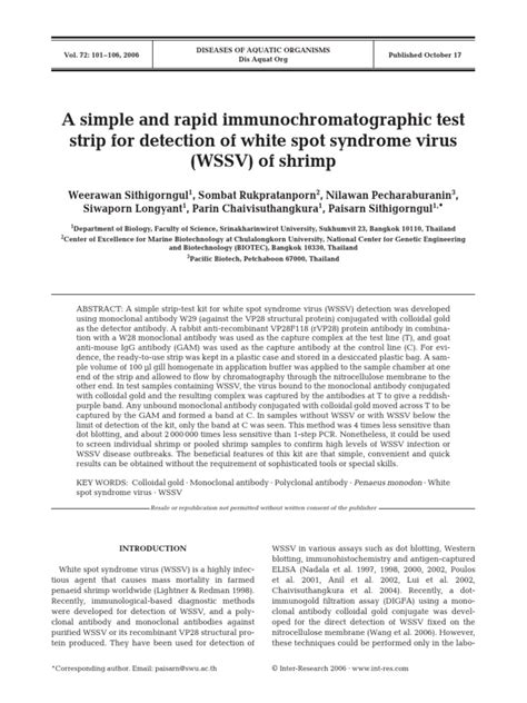 3. Reaction and Detection: The sample moves through the test strip, where it encounters antibodies specifically designed to bind to the WSSV . If the virus is present, the antibodies will capture it, and a colored line will appear on the strip, indicating a positive result.