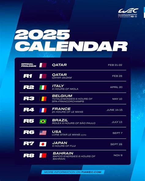 So, what’s the big news for the WEC 2025 calendar ? The FIA World Endurance Championship is back with a bang, and they’ve cooked up a schedule that promises a global spectacle. We’re talking about a mix of classic, legendary circuits and some newer additions that are quickly becoming fan favorites. The series continues to grow, attracting more manufacturers and drivers than ever before, and this calendar is a testament to that. Get ready for some serious wheel-to-wheel action across continents. We’ve got the iconic 24 Hours of Le Mans, of course, which is the crown jewel of the season, but there’s so much more to get excited about. The calendar aims to provide a balanced challenge, testing the endurance of both man and machine across diverse track layouts and conditions. It’s not just about raw speed; it’s about strategy, reliability, and teamwork. The inclusion of specific tracks often signals a strategic move by the WEC organizers, aiming to showcase the capabilities of the Hypercars and LMP2 machinery on circuits that demand different skill sets. For instance, a high-speed track like Spa requires different setup compromises than a tighter, more technical circuit like Fuji. This variety is what makes endurance racing so captivating, and the 2025 calendar seems to have nailed this balance. We’re going to be seeing the best drivers in the world going head-to-head, pushing their machines to the absolute limit, all vying for those crucial championship points. It’s going to be an epic journey, and knowing the calendar is the first step to planning your race-watching year. Stay tuned as we break down each event!