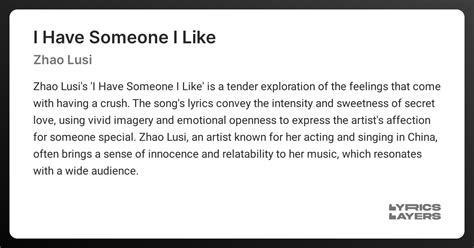 Hey guys, if you’re anything like me, you’ve probably found yourself utterly enchanted by the incredible talent of Zhao Lusi. She’s not just a captivating actress who brings characters to life with unparalleled charm and relatability ; she’s also a gifted singer whose voice can just melt your heart . And among her delightful discography, there’s one song that truly stands out for many fans, myself included: “I Have Someone I Like” . This track isn’t just a song; it’s an anthem for anyone who’s ever felt that fluttery, secret adoration for someone special. You know that feeling, right? That little spark when you see them, that quiet joy when they’re near, and that overwhelming desire to keep those emotions close to your chest. Well, this song captures it perfectly .